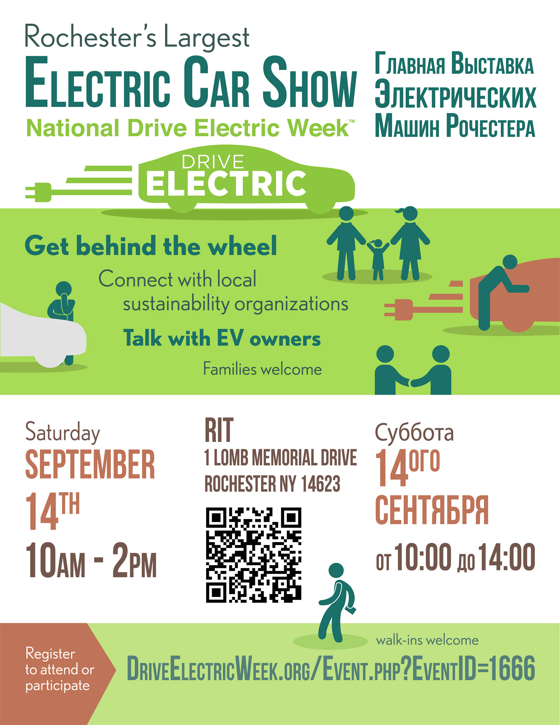 Print design for local organization that promote clean energy and electric vehicles. Vector icons by the nounproject.com, see print design for original icons design.