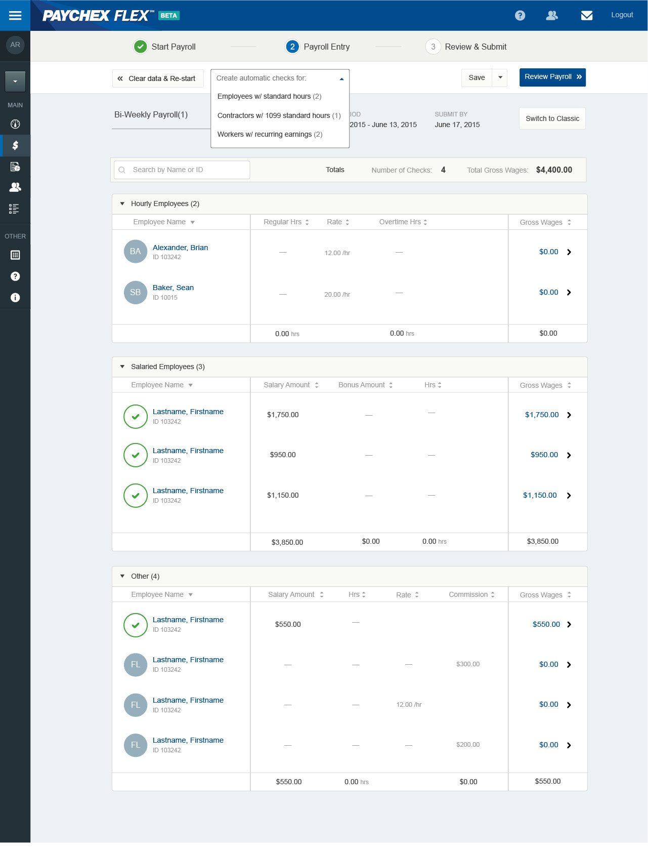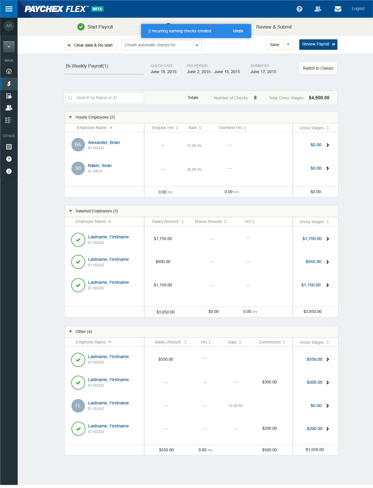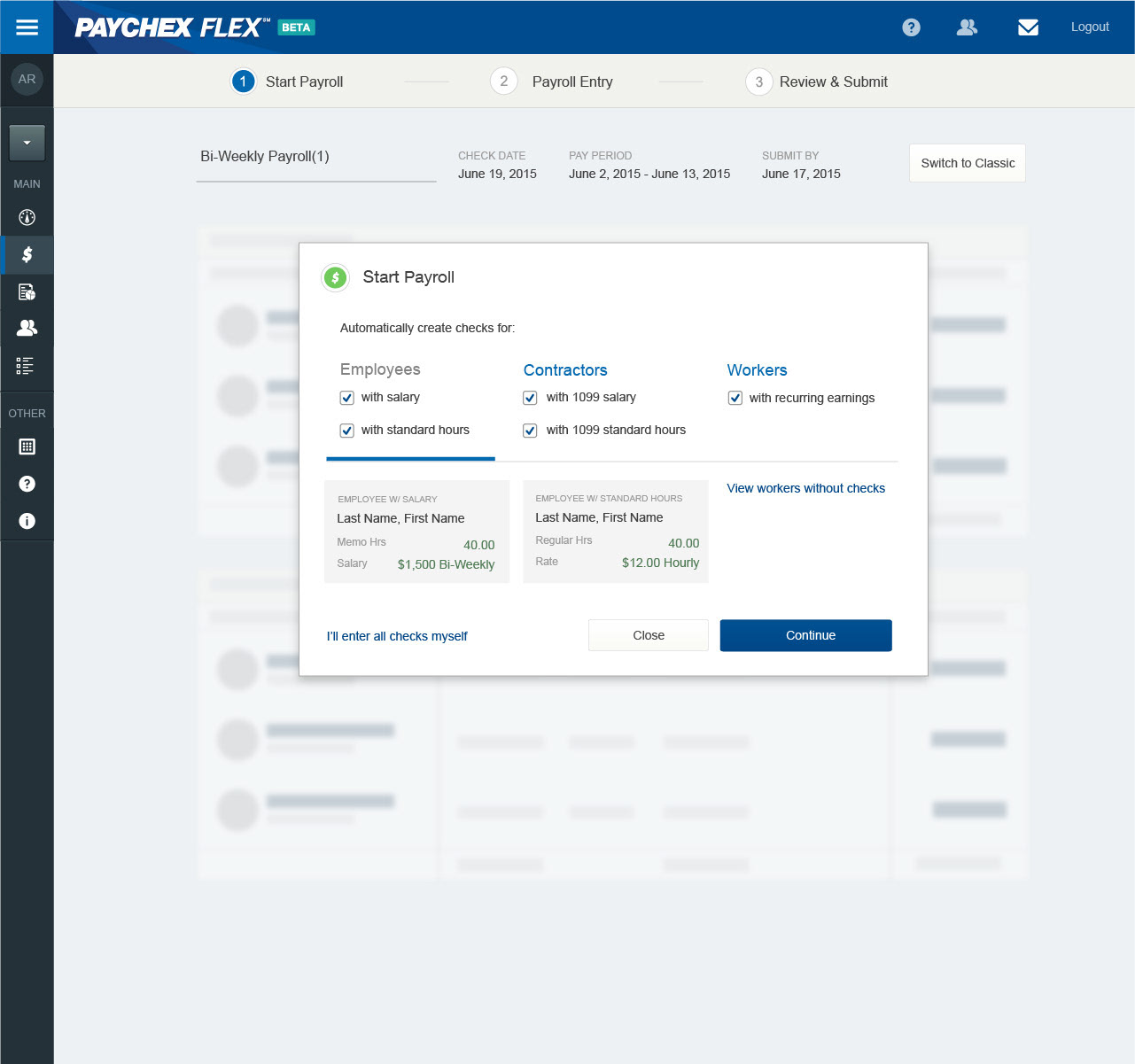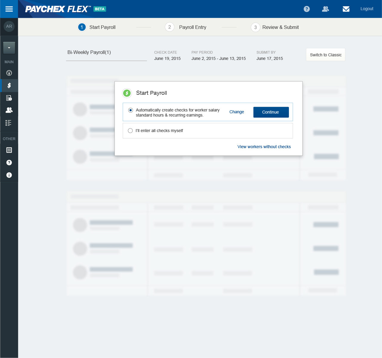 Paychex preloading payroll edit checks workflow.