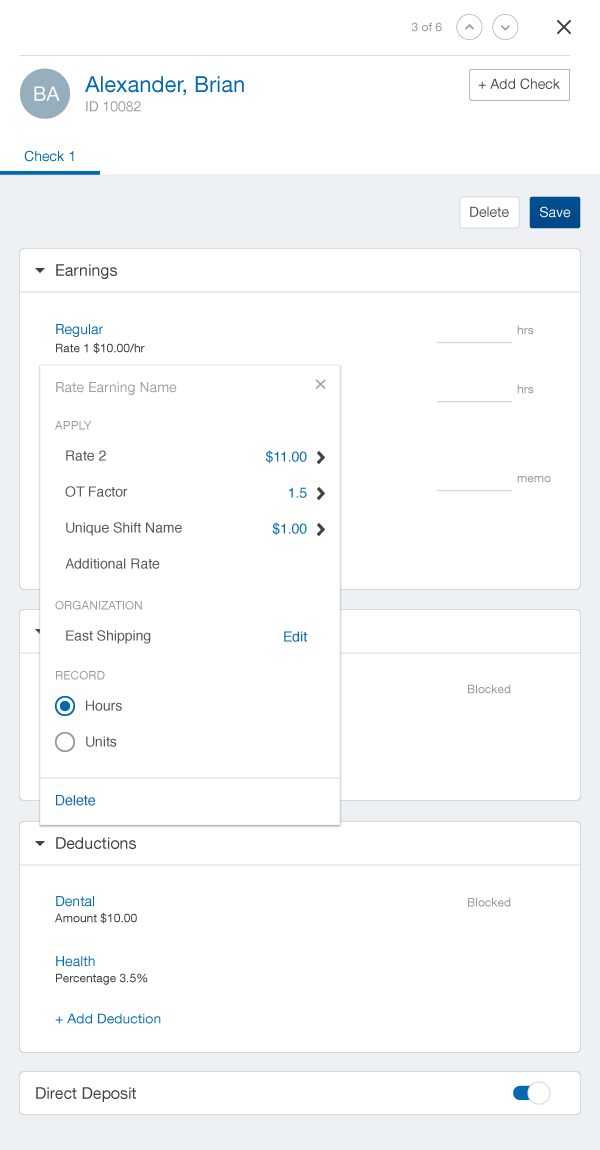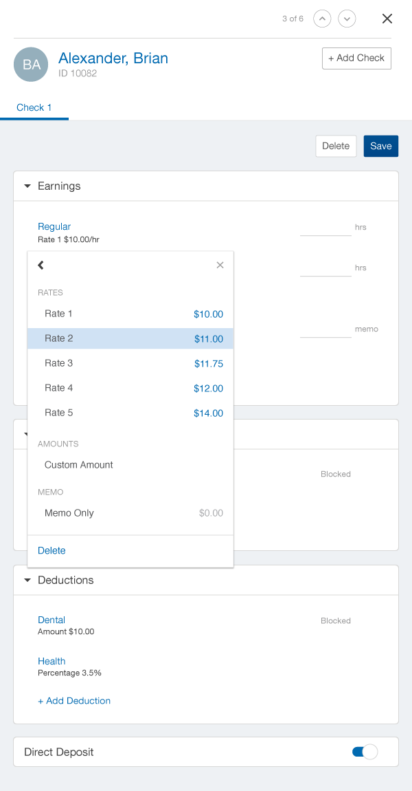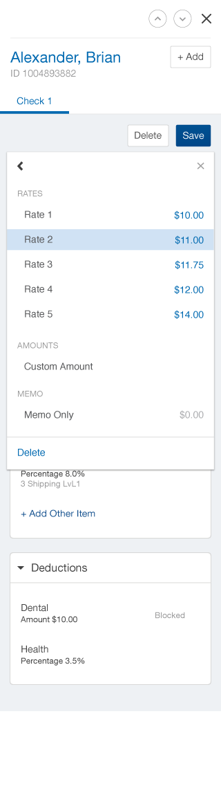 Paychex pay rate selection tool on desktop and mobile.
